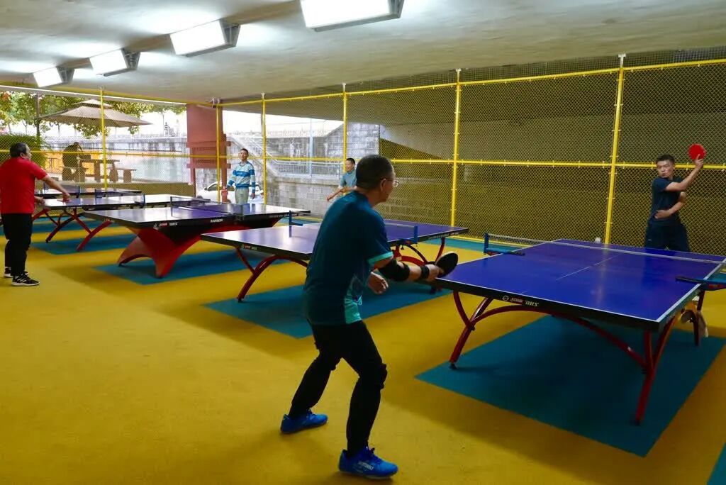 从这里出发,步行五分钟即可抵达富乐大桥下的活动区域——社区老年大学堂和乒乓球馆坐落于此,已成为居民口中的“幸福驿站”。在老年大学堂,占地450平方米的多功能教室根据居民需求,开设了舞蹈、声乐、乐器等热门课程;隔壁200平方米的乒乓球馆铺设了崭新塑胶地面,并加装了全围栏防护。