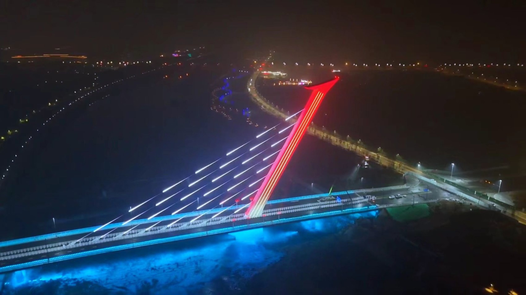 值得一提的是,白天的大桥,以其流畅的线条和便捷的功能,成为连接两岸的交通动脉。当夜幕降临,它便展现出另一重魅力,华灯初上,大桥精心设计的灯光系统次第点亮,桥塔、拉索与护栏在柔和的光晕中勾勒出优雅的轮廓,倒映在波光粼粼的安昌河上,点缀着城市夜景。