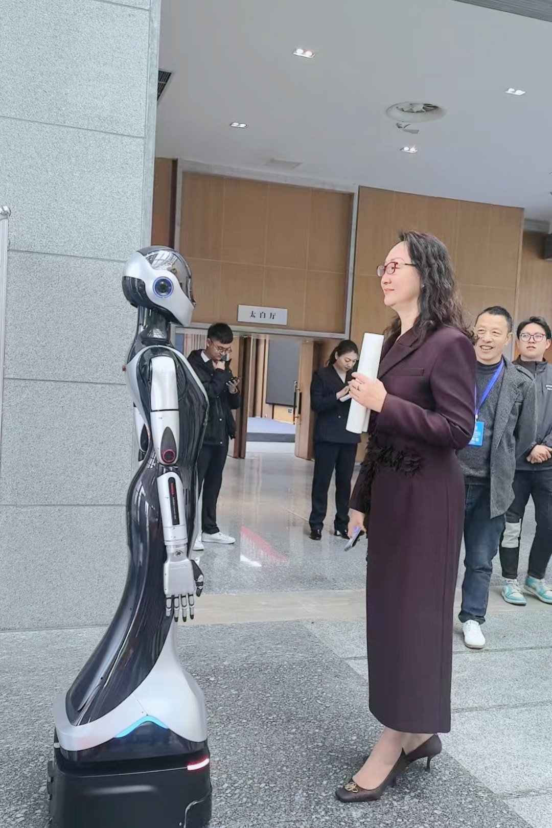 两会现场参会代表正在与机器人对话。受访对象供图