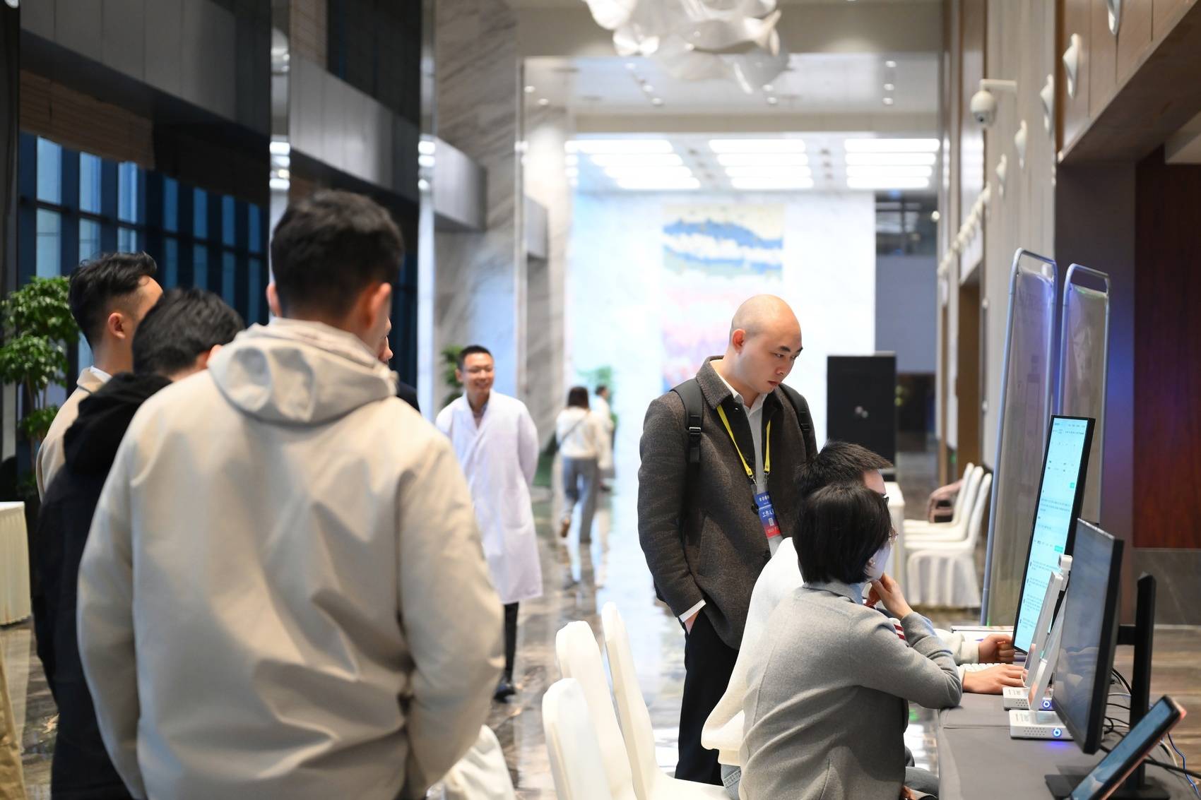 参会代表在场外体验敏鹊AI医生助手系统与AI健康管理系统