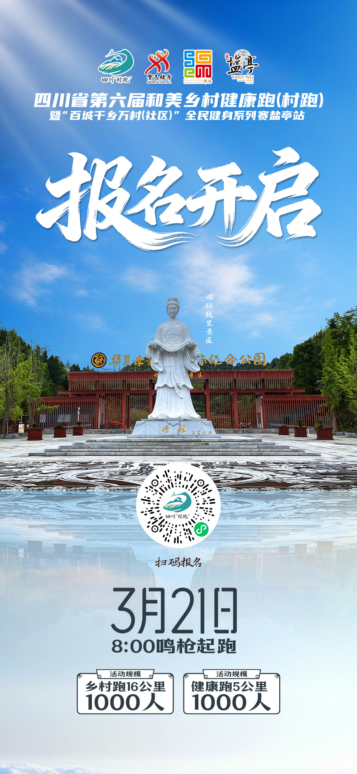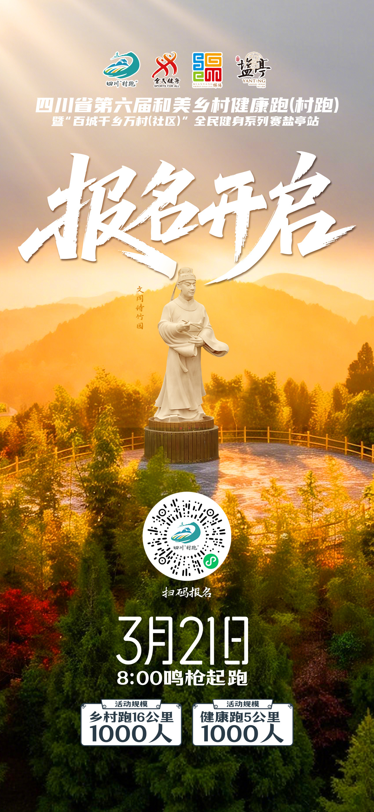 春意渐浓,乡野如画。作为2026年四川“村跑”春季首站,四川省第六届和美乡村健康跑(村跑)暨“百城千乡万村(社区)”全民健身系列赛将于3月21日在绵阳盐亭县高渠镇活力开跑,报名通道于2月26日17:00正式开启。
