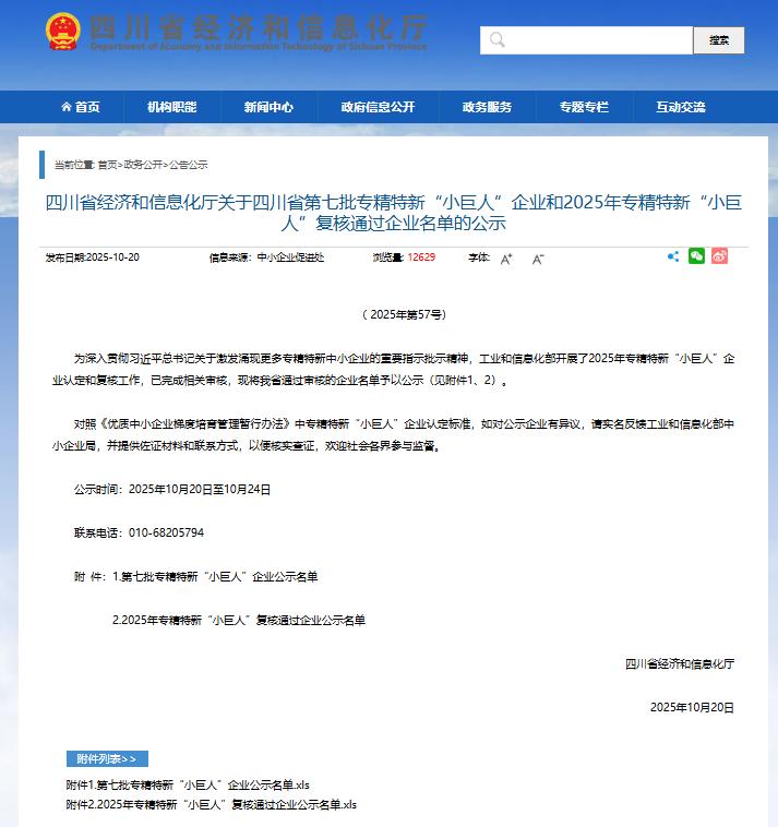 10月20日,《四川省经济和信息化厅关于四川省第七批专精特新“小巨人”企业和2025年专精特新“小巨人”复核通过企业名单的公示》发布,江油4家企业上榜!