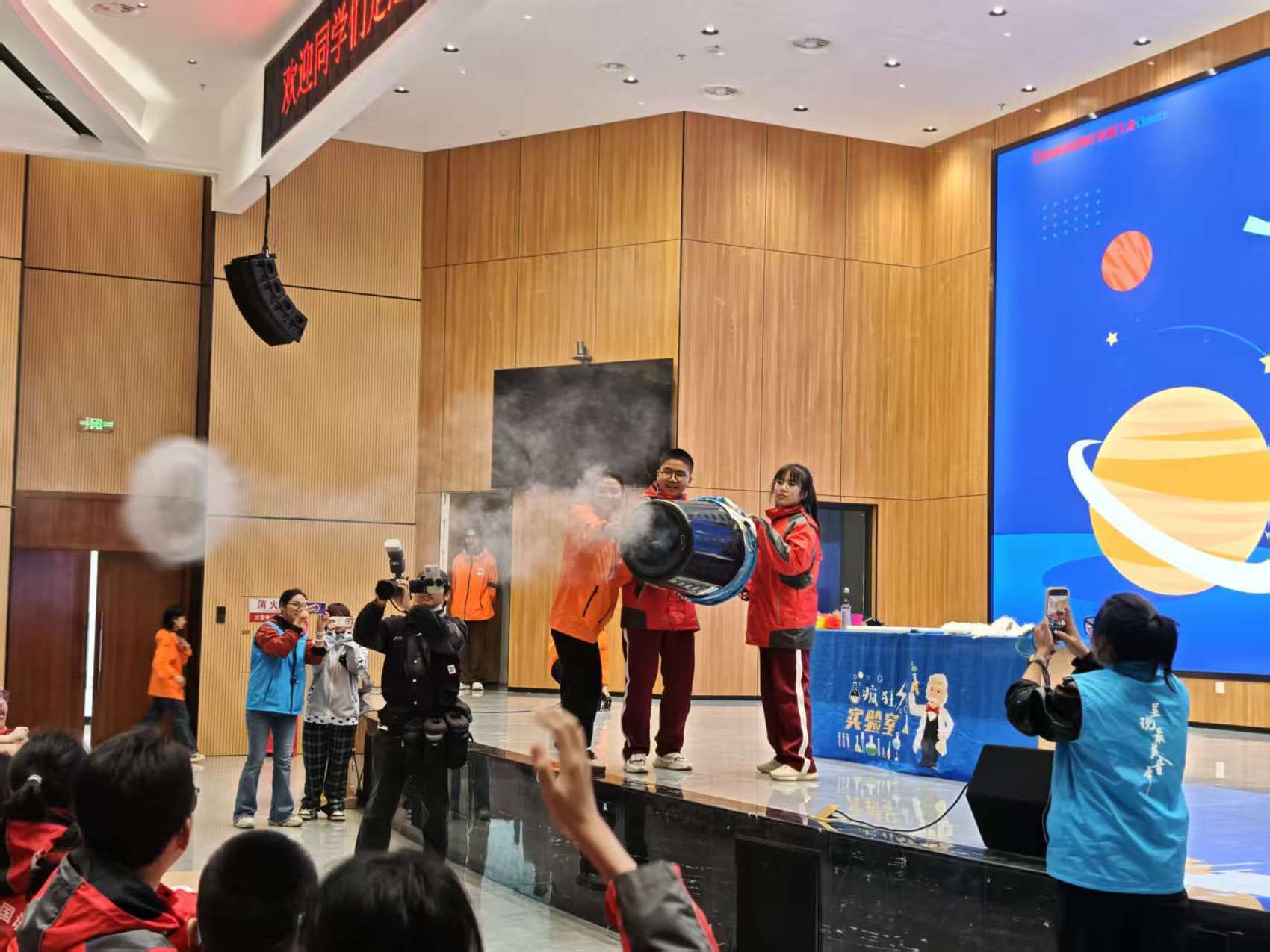 此外,静电实验、“等离子脉冲炮”演示,以及“空气炮”实验,不仅打破了传统的科普模式,将工业生产中的科学原理转化为了直观且有趣的实验项目。手工课堂上,同学们亲手操作起简易仪器,尝试组装产品,看到自己亲手组装的小产品成功运行,孩子们脸上露出了自豪的笑容。