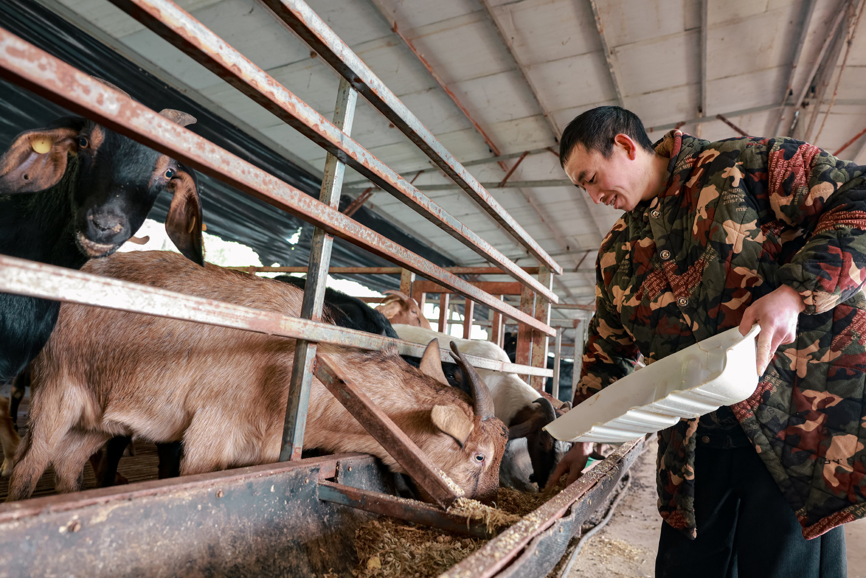养殖户喂养