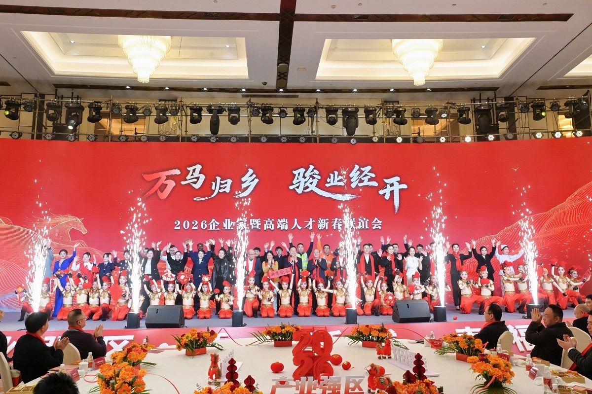 2月9日,绵阳经开区举行“万马归乡骏业经开”2026企业家暨高端人才新春联谊会。百余家来自国内外知名企业和商协会代表、市属国有企业负责人、绵阳经开区“招商大使”和高端人才代表齐聚一堂,共话家乡发展。