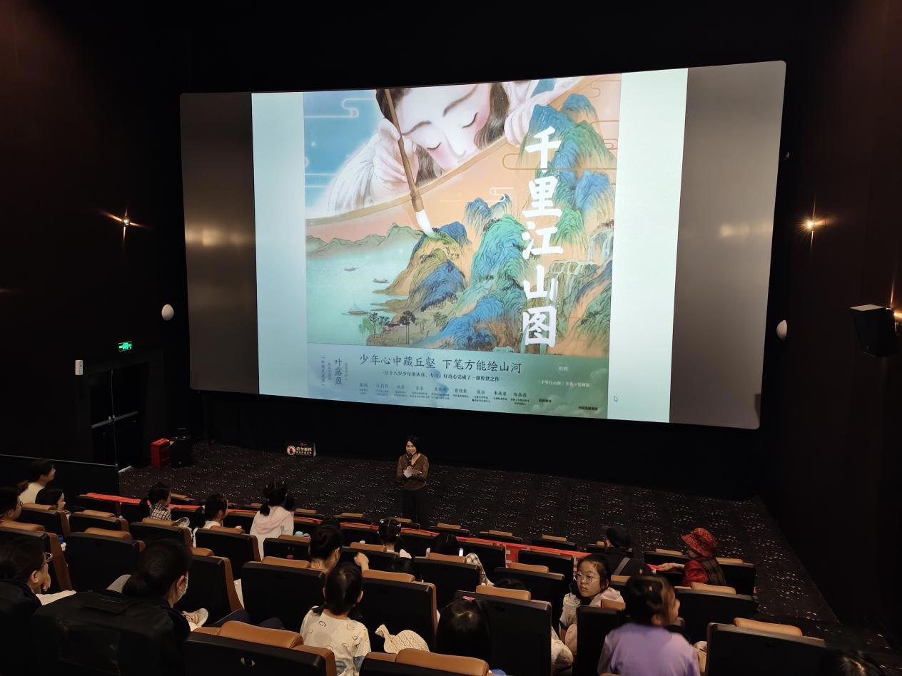 与以往读书活动不同,主办方并未停留在单向讲授,而是瞄准儿童认知特点,用故事、提问与情景互动搭建起一座通向经典的桥梁。活动现场,教师以文化讲解员的角色登场,将传世名画《千里江山图》化作一个个生动有趣的绘本故事,青绿山水在问答间铺展开来,家国情怀在对话中悄然浸润。孩子们目不转睛,争相举手,原本静默于博物馆的艺术瑰宝,就这样走进了童真的世界。