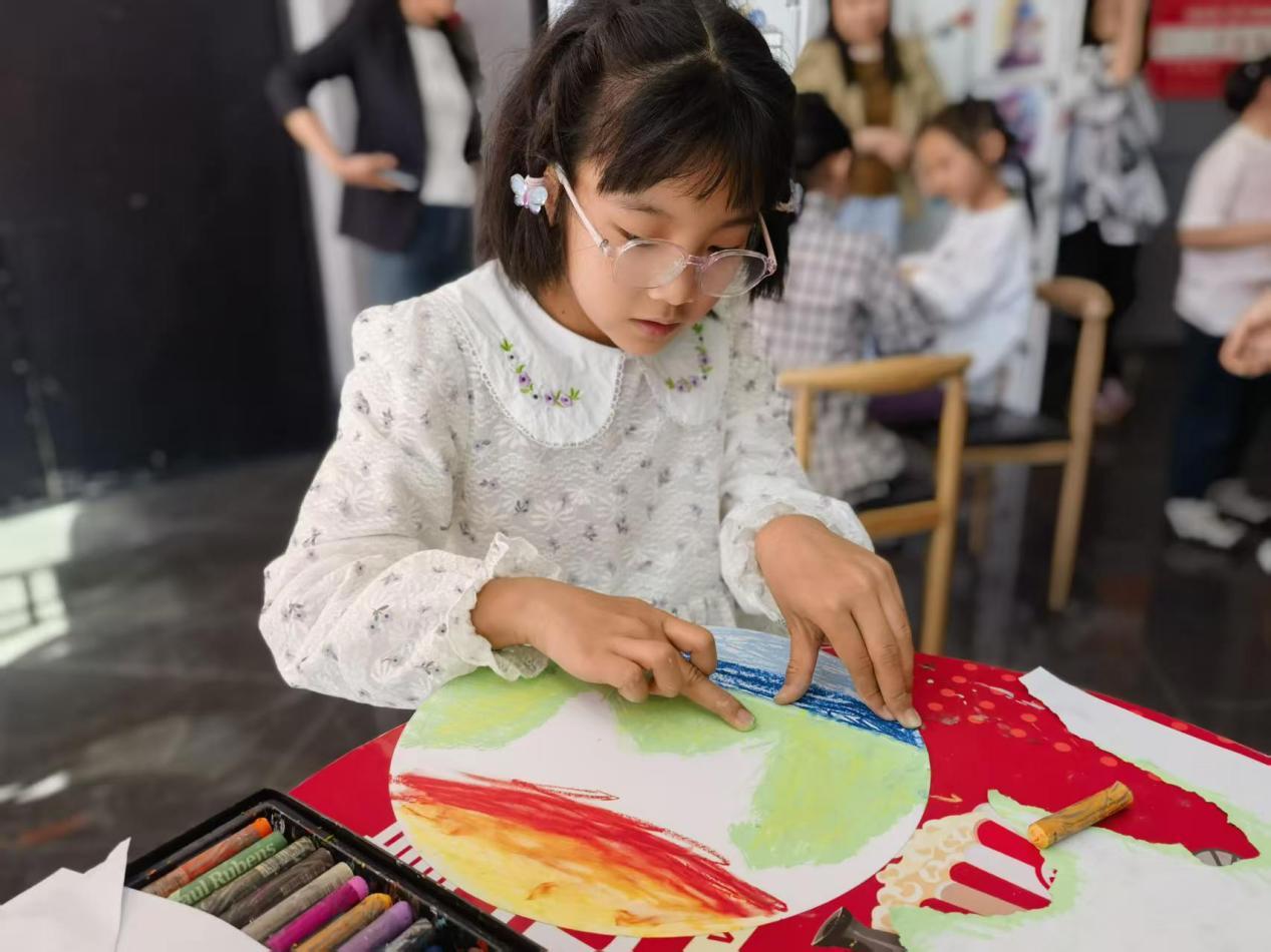 活动高潮出现在“手绘千里江山”环节。孩子们拿起画笔、彩纸与黏土,以小手勾勒山河轮廓,用创意复刻青绿意境。家长在一旁并肩创作,或轻声讲述画中的故事,墨香与笑语交织,温情与文化相融。这种“读、绘、讲、悟”一体化设计,让阅读不再局限于书本,而是延伸至动手与表达,在快乐体验中自然催生对经典的热爱。
