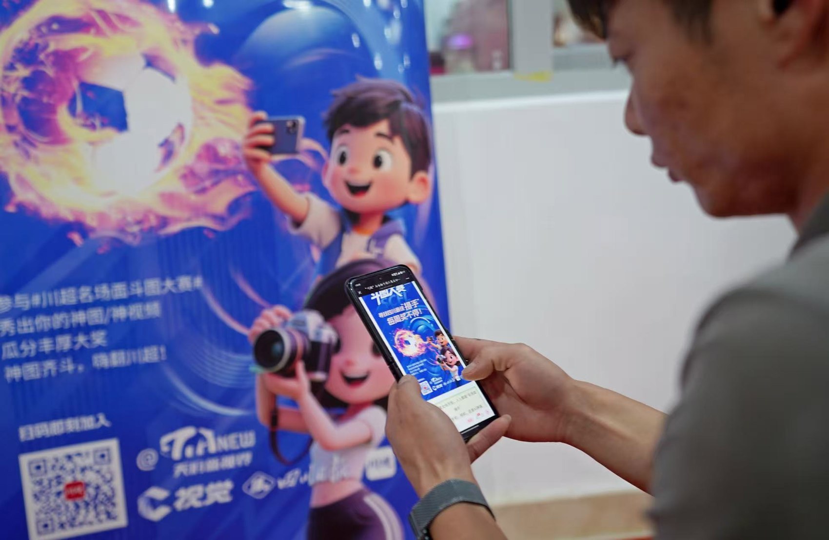 球迷现场下载川观APP参与斗图大赛(郭超英摄)