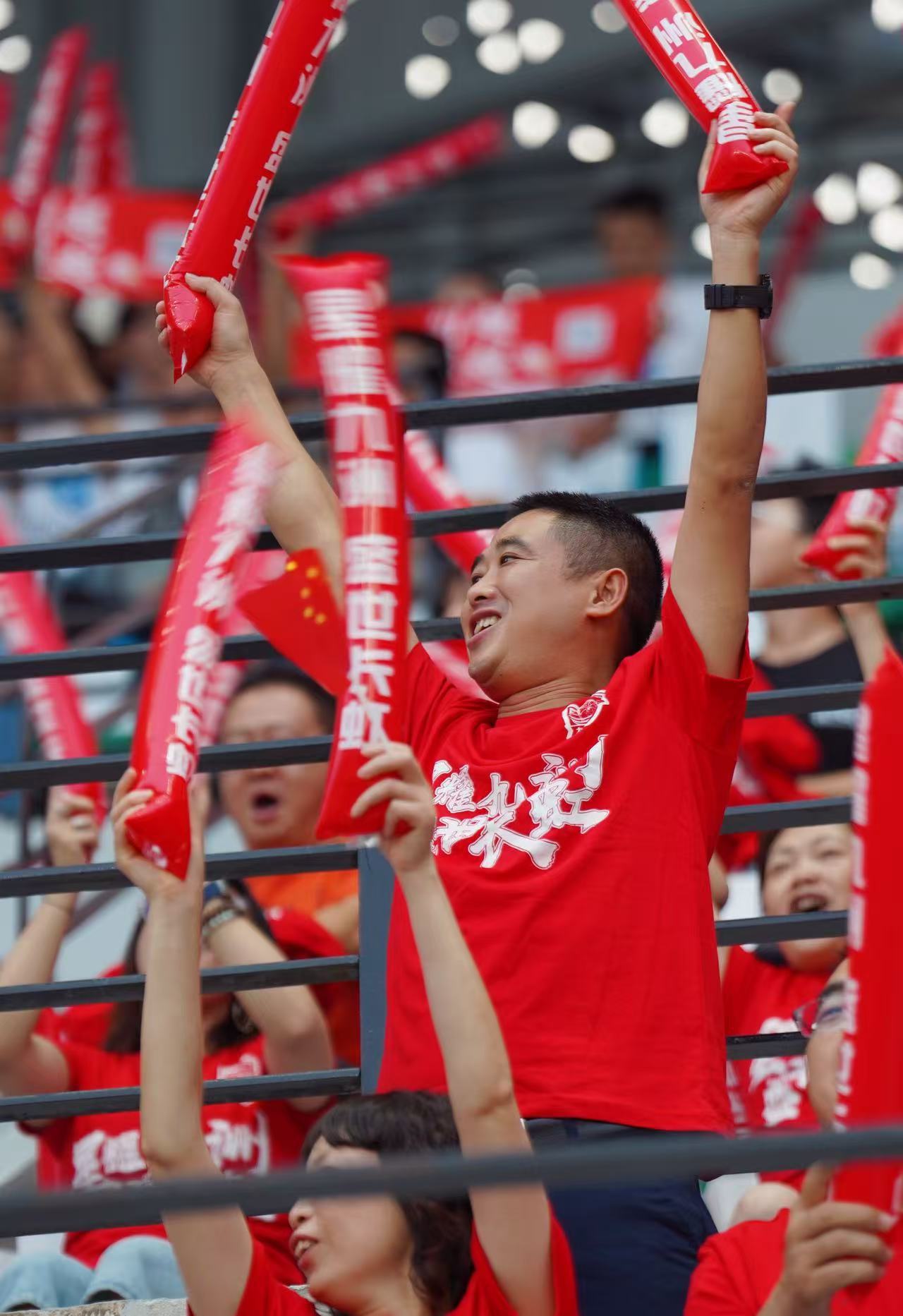 看台上的球迷拼抢(郭超英摄)