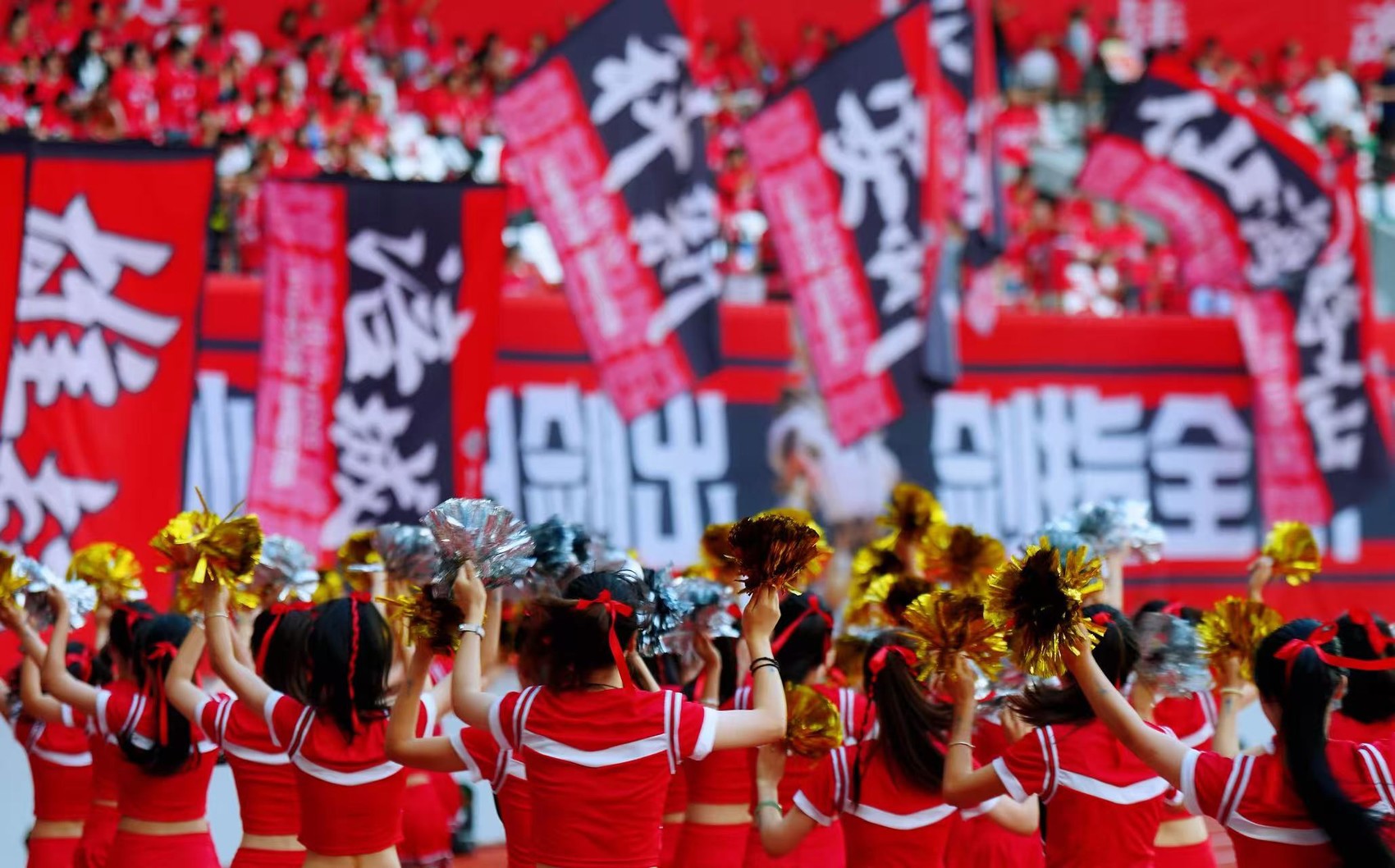 啦啦队现场互动(郭超英摄)