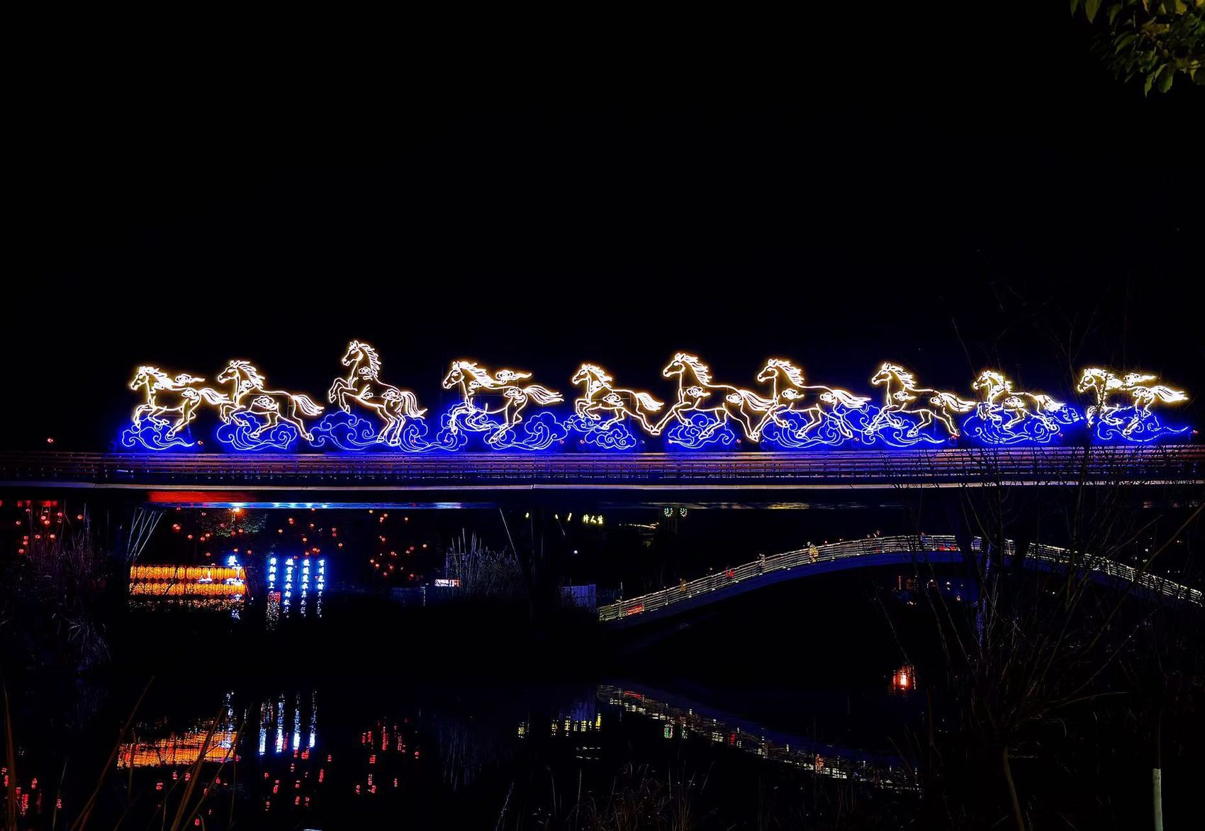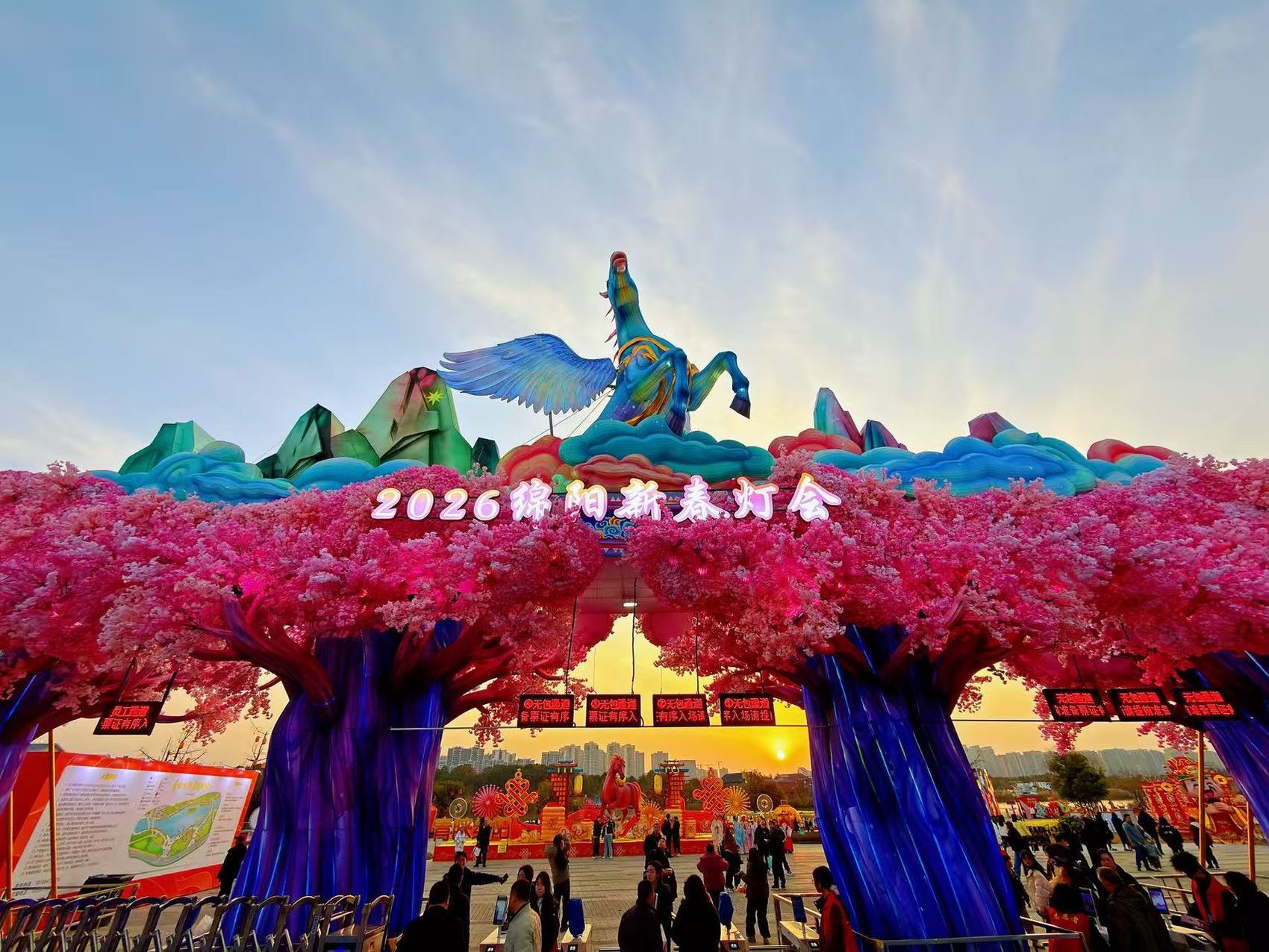 2月10日晚,2026年绵阳新春灯会在游仙区小枧生态湿地公园亮灯,以“青睐绵阳·马到成功”为主题,融合非遗、科技与童趣,开启新春光影盛宴。四大主题区——“新春民俗·马到成功”“幻夜绮梦·花影流光”“童梦星河·彩笔绘春”“诗韵绵州·雅集华光”内,上百组彩灯流光溢彩,“春樱仙境”“天马踏云”等灯组璀璨夺目。生肖元素贯穿全场,从天马仙骥大门到徐悲鸿《双骏图》复刻灯组,传递新年祥瑞之愿。