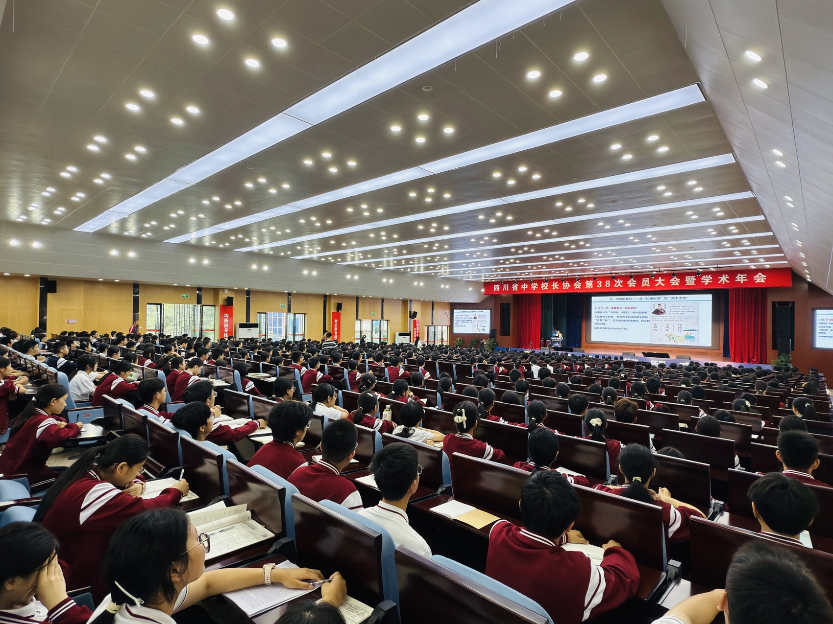 教学楼里,知名校友系列讲座正在进行。北京化工大学生命学院二级教授、全国三八红旗手,三台中学82级校友李红梅站在台上,这位深耕化学计量与标准物质领域的科学家,为学弟学妹带来了以测量科学为主题的讲座。