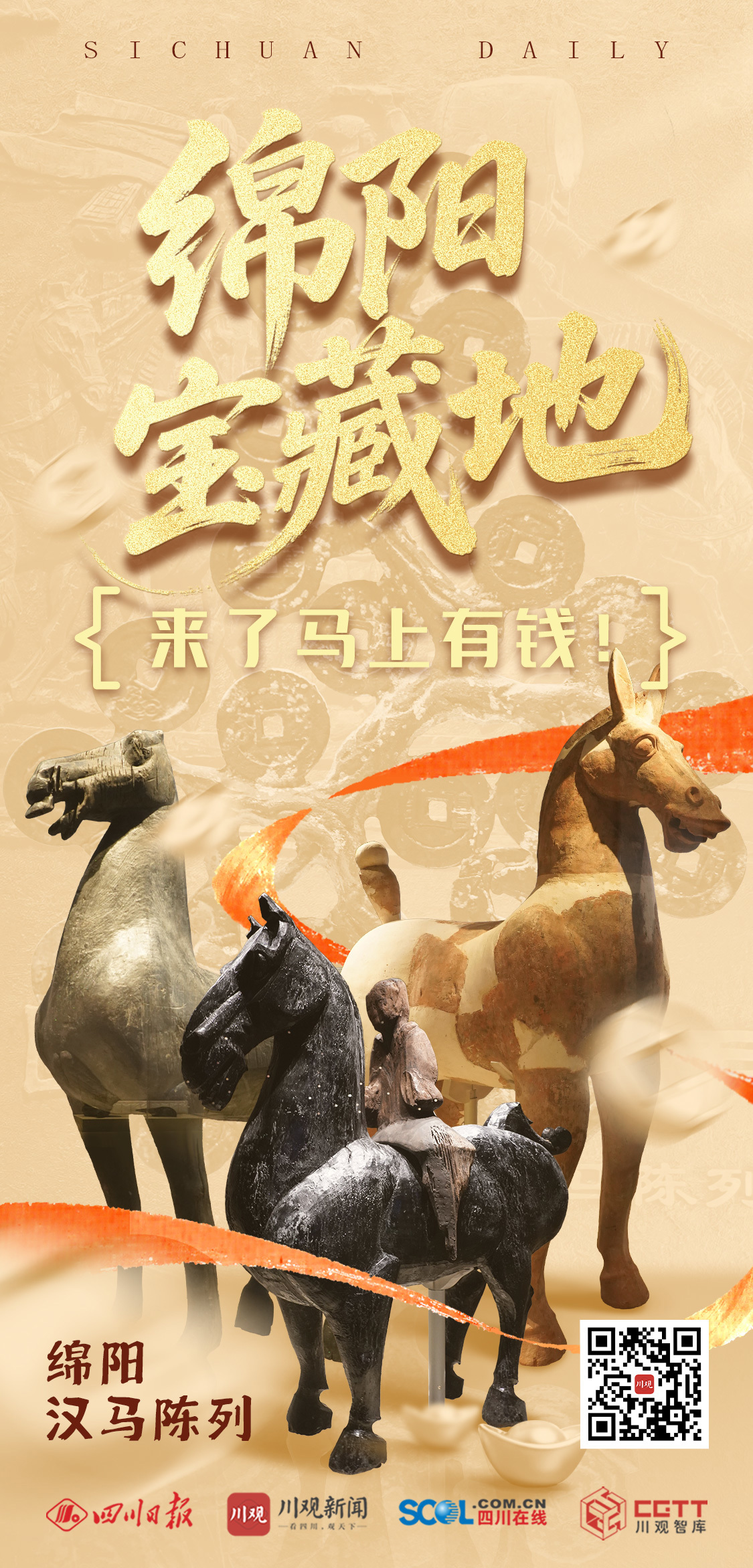 丙午马年之际,四川日报记者走进绵阳市博物馆,探寻文物中的“马”元素。作为国内馆藏汉代马文物最丰富的博物馆之一,这里珍藏着气势恢宏的西汉漆木马阵,膘肥体壮、四肢短粗的陶马,以及栩栩如生的大铜马。